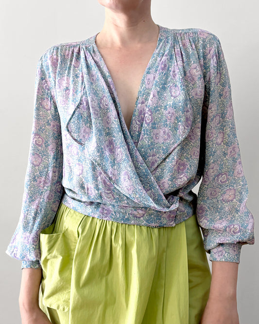 1920s Floral Crepe Blouse–S