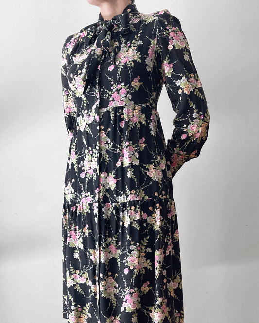 1970s Floral Bow Dress–S