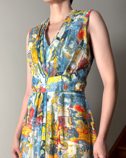 1970s Suminagashi Print Maxi Dress–S/M