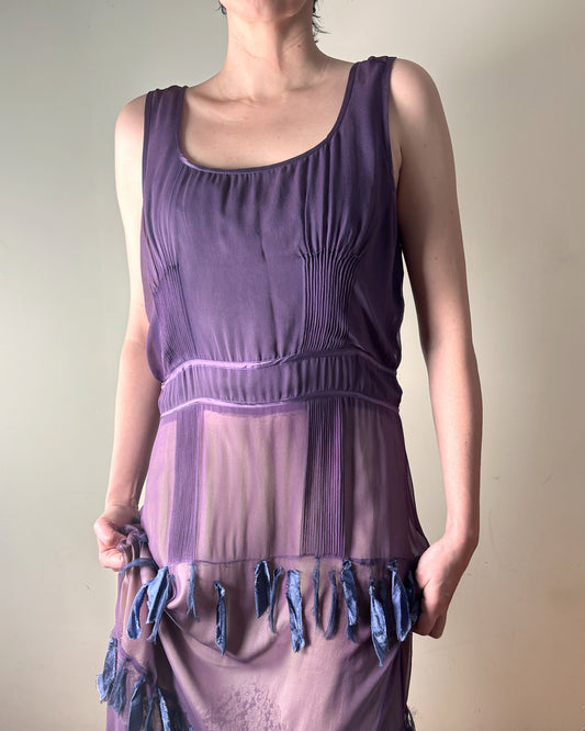 90s Silk Chiffon Fringed Slip Dress–S/M