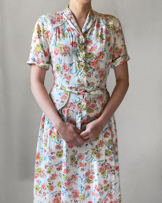 1940s Daisies Print Dress–XS