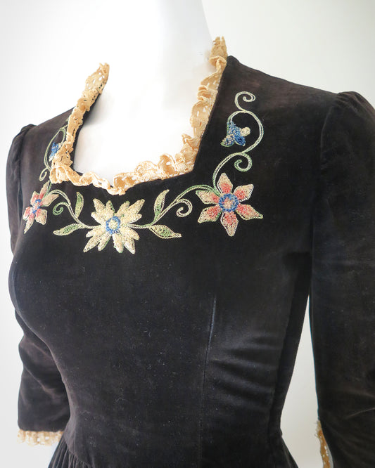 1940s Lanz of Salzburg Velveteen Dress - XS